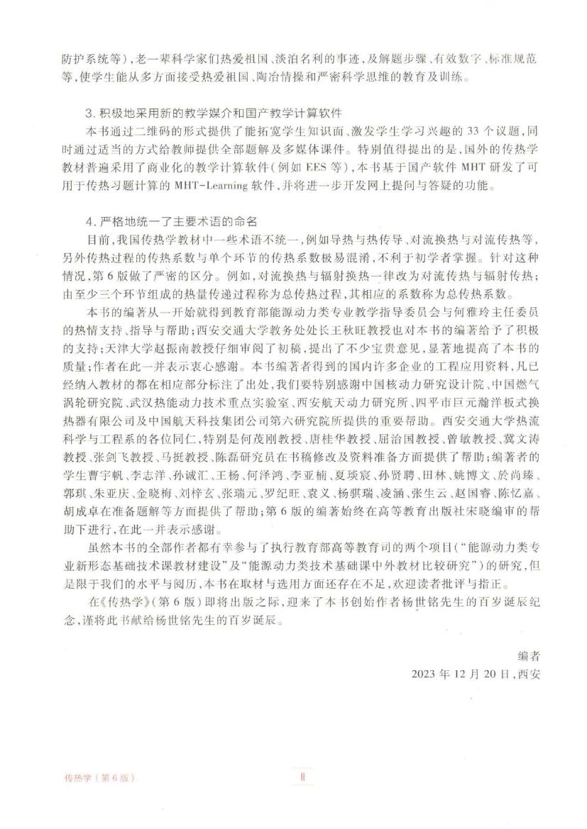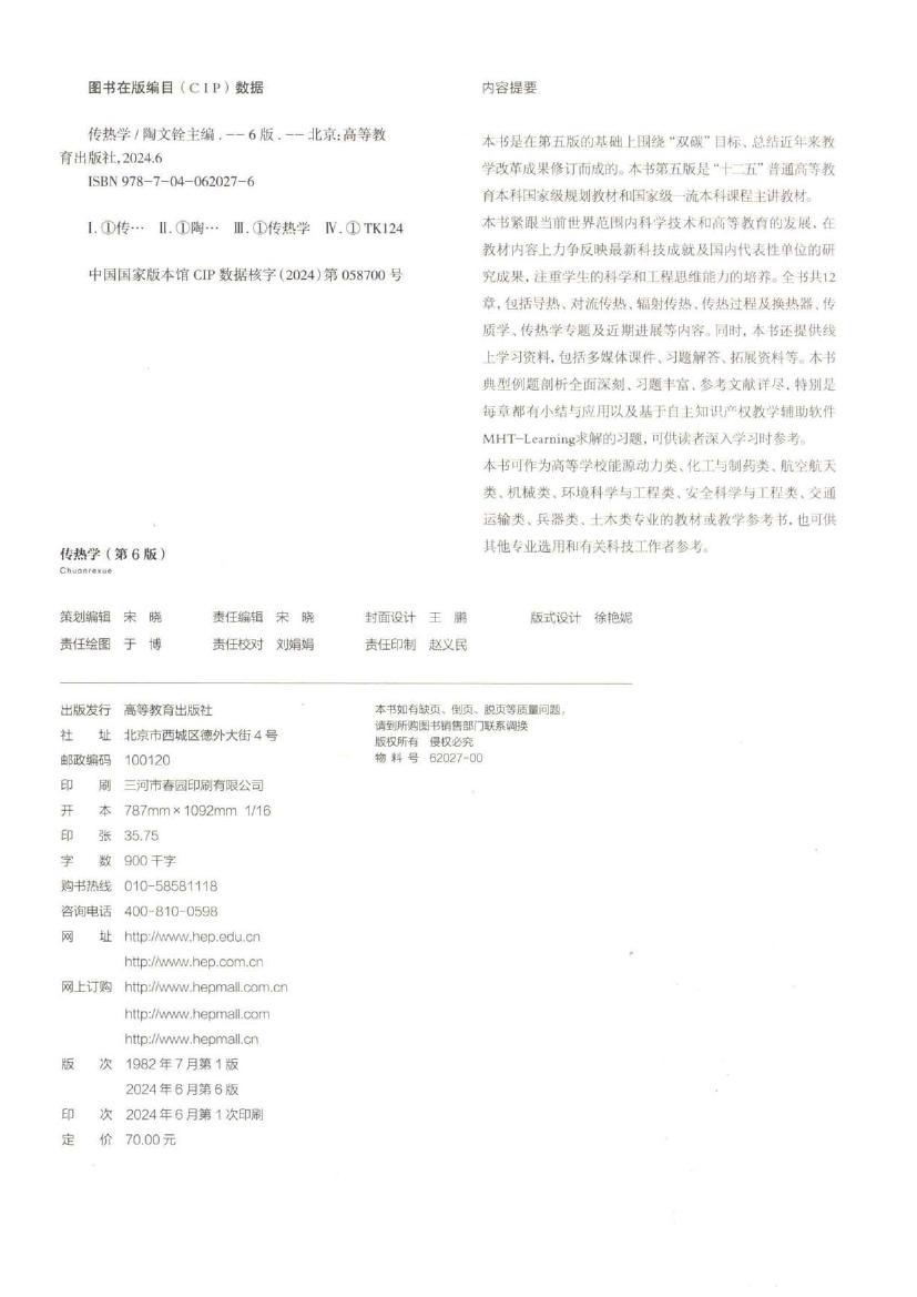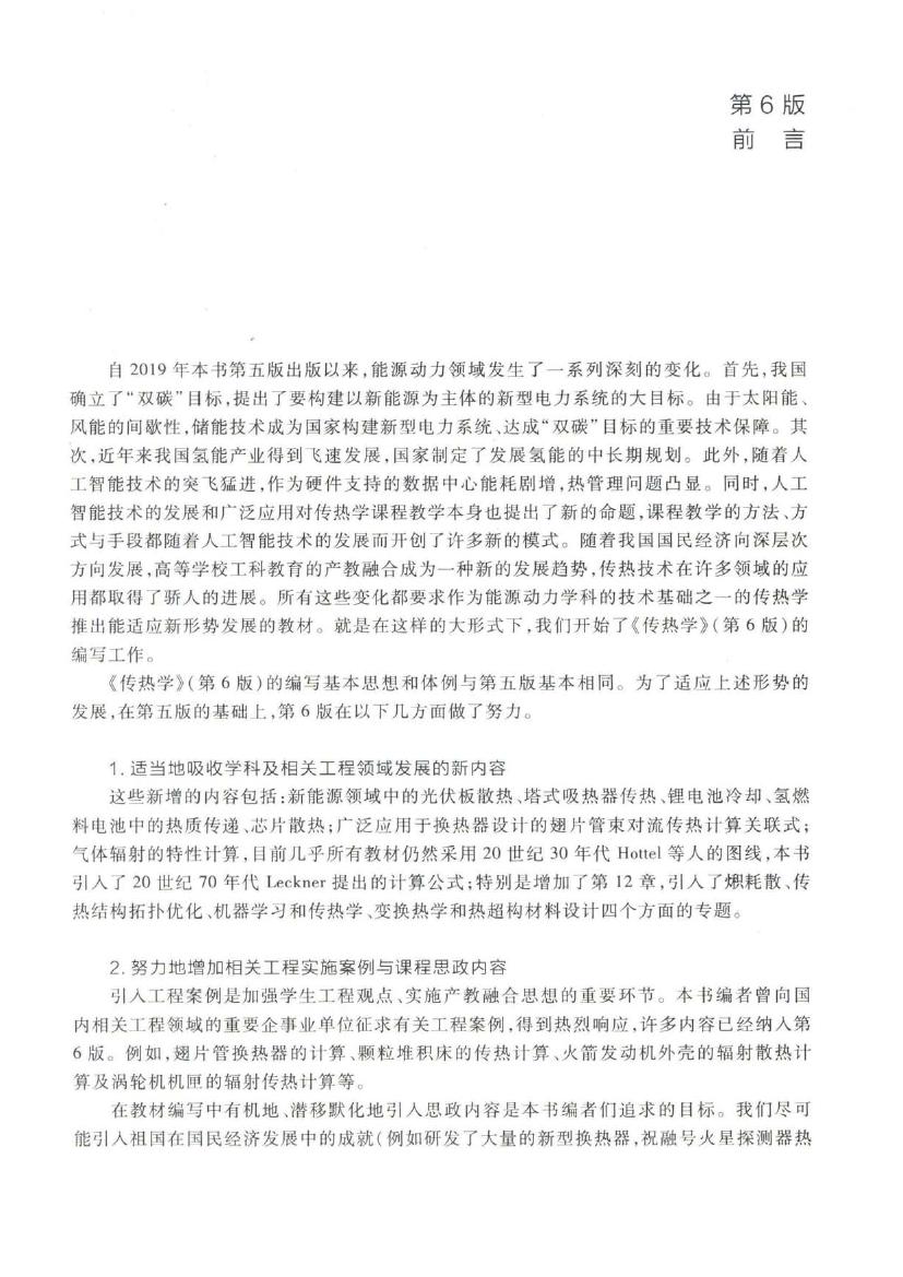 本书是在第五版的基础上围绕“双”目标、总结近年来教学改革成果修订而成的。本书第五版是“十二五”普通高等教育本科国家级规划教材和国家级一流本科课程主讲教材本书紧跟当前世界范围内科学技术和高等教育的发展,在教材内容上力争反映最新科技成就及国内代表性单位的研究成果,注重学生的科学和工程思维能力的培养。全书共12章,包括导热、对流传热、辐射传热、传热过程及换热器、传质学、传热学专题及近期进展等内容。同时,本书还提供线上学习资料,包括多媒体课件、习题解答、拓展资料等。本书典型例题剖析全面深刻、习题丰富、参考文献详尽,特别是每章都有小结与应用以及基于自主知识产权教学辅助软件MHT-Learning求解的习题,可供读者深入学习时参考。