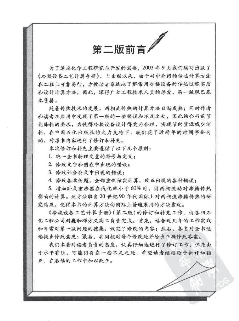 本书主要介绍化工工程中常用冷换设备的工艺设计原则和计算方法,其中包括管壳式换热器与冷凝器、空气冷却器、重沸器,以及近年来在工业中应用比较广泛的、典型的高效传热设备和换热管,例如折清杆换热器和冷器器、T形翅片管重沸器、螺纹管和波纹管等。同时,介绍如何应用夹点技术进行换热网络的合成与模拟,使得换热流程设计与单元设备计算紧密地结合。各章附有典型的例题,逐步说明计算步骤和结果。