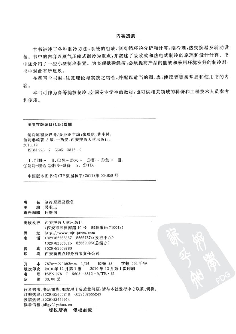 本书讲述了各种制冷方法,系统的组成,制冷循环的分析和计算,制冷剂,热交换器及辅助设备。书中的内容以蒸气压缩式制冷为重点,并叙述了吸收式和热电式制冷的原理和设计计算。 如你有其他需求或对网站有什么建议的话,可以随时联系渝石网络站长,站长将及时地给予回答。同时你也可以在网站下载其相关资料,下载方法见网站公告。 顺便做个广告,帮忙点击房屋出租。